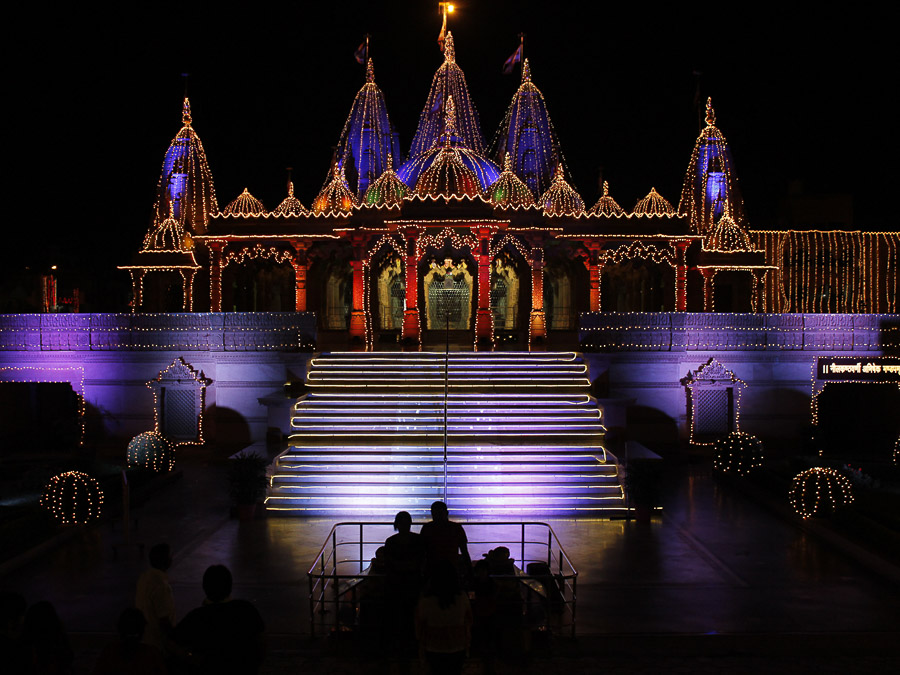 The temple displays stories and messages from the life of Bhagwan Swaminarayan, perfect for those interested in culture and religion.